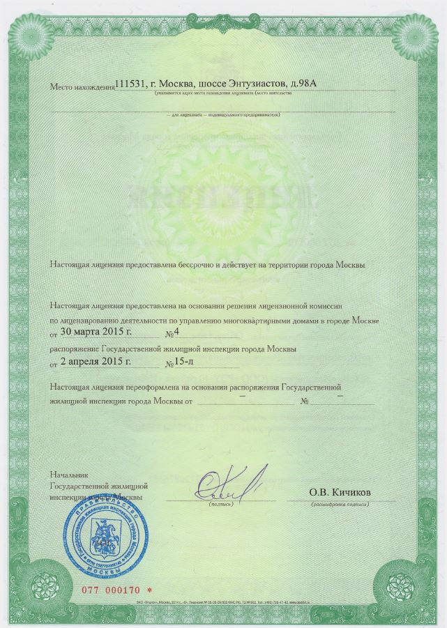 111531, г. Москва, шоссе Энтузиастов, дом 98а